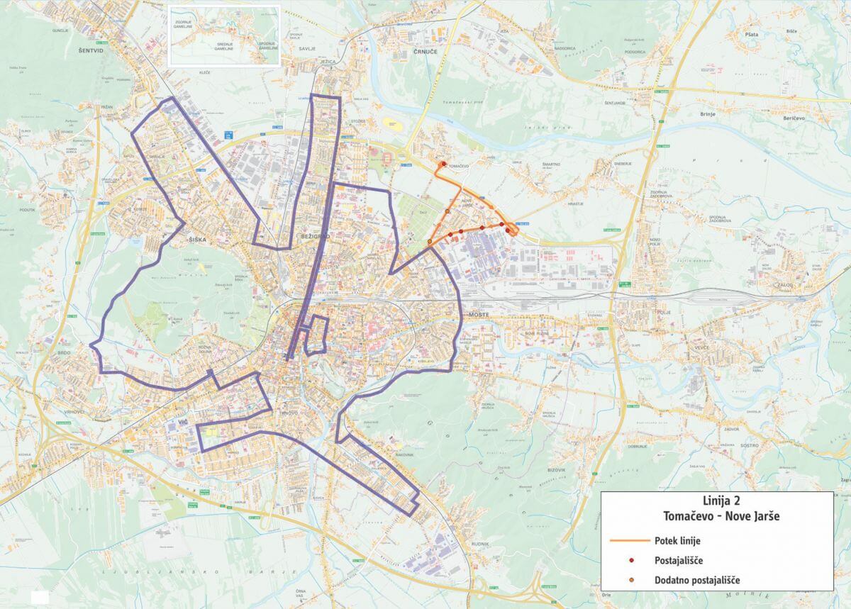 Iz smeri Tomačevo (ne vozi): V času zapore bodo obratovali avtobusi na relaciji: obračališče Nove Jarše, Šmartinska cesta, Jarška cesta, Clevelandska cesta, obračališče Tomačevo, Tomačevska cesta, servisna cesta Ljubljanske severne obvoznice, rondo Tomačevo, Štukljeva cesta, Vojkova cesta (prečenje v križišču z Božičevo ulico), Linhartova cesta, Topniška ulica, Vilharjeva cesta, Železna cesta, Vojkova in enako v smeri.